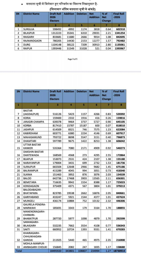 रायपुर : अर्हता तिथि 1 जनवरी 2026 के आधार पर प्रदेश में निर्वाचक नामावलियों का विशेष गहन पुनरीक्षण (एसआईआर) संपन्न किया गया