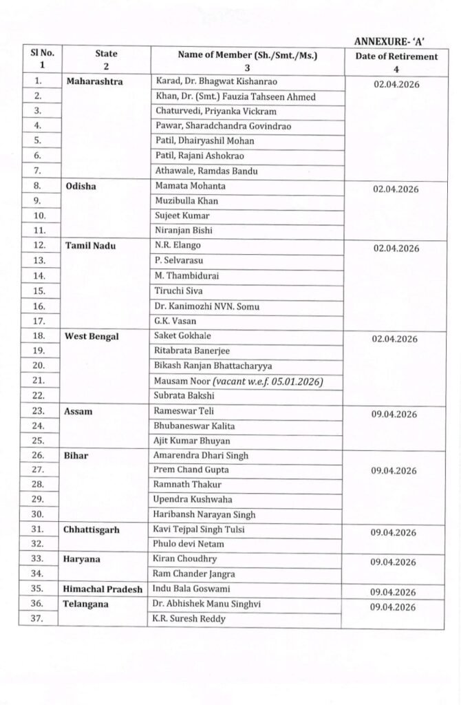 स्वतंत्र और निष्पक्ष चुनाव सुनिश्चित करने के लिए पर्यवेक्षकों की नियुक्ति के माध्यम से चुनाव प्रक्रिया की कड़ी निगरानी की जाएगी। निर्वाचन की संपूर्ण प्रक्रिया आयोग के निर्धारित दिशा-निर्देशों के अनुरूप संपादित की जाएगी।  अप्रैल 2026 में सेवानिवृत्त होने वाले सदस्यों का राज्यवार विवरण अनुलग्नक ‘A’ में पृथक रूप से संलग्न है।