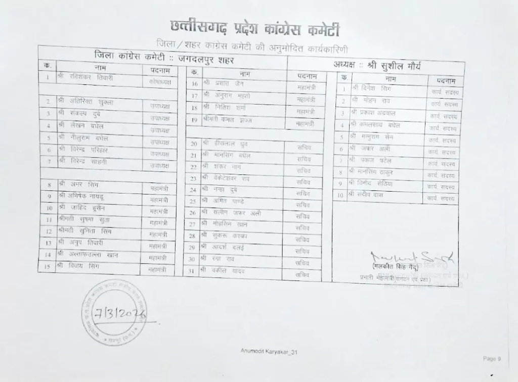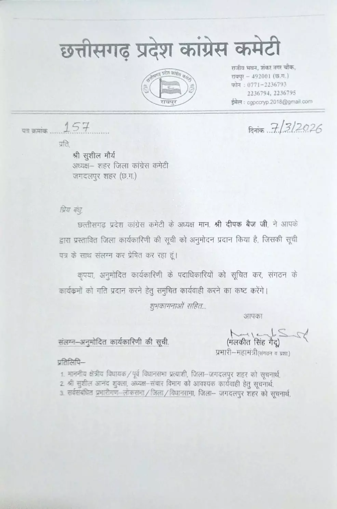 जगदलपुर कांग्रेस में नई कार्यकारिणी की घोषणाSaanvi SahuMarch 7, 2026छत्तीसगढ़ Share on Facebook Share on X (Twitter) Share on WhatsApp Share on Telegram Share on Email Share on Facebook Share on X (Twitter) Share on WhatsApp Share on Telegram Share on Email Related Posts स्वास्थ्य केंद्र का कलेक्टर ने किया निरीक्षण वृद्ध महिला की हत्या से इलाके में दहशत चक्रीय चक्रवात का चक्कर, मौसम सुहाना होने के आसार अमित जोगी को SC का दरवाजा खटखटाना चाहिए – MLA मिश्रा वन विभाग की पक्षी नर्सरी में भीषण आग: कई एकड़ में फैले पेड़-पौधे व जीव-जंतु हुए प्रभावित उड़ीसा से MP सप्लाई से पहले लाखो का गांजा जब्त, 7 गिरफ्तार